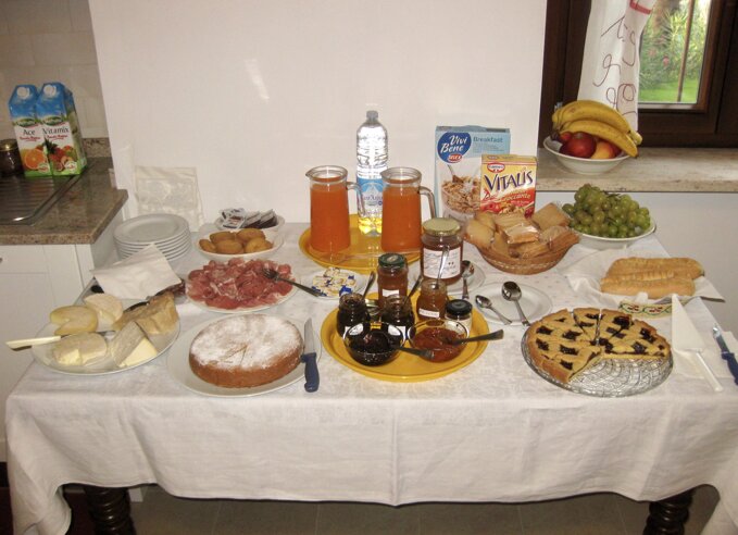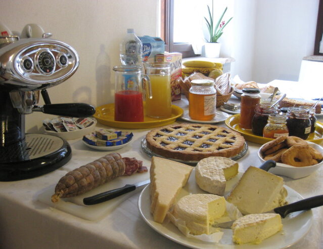 Offriamo ai nostri ospiti una ricca colazione a base di prodotti tipici, marmellate e torte fatte in casa.