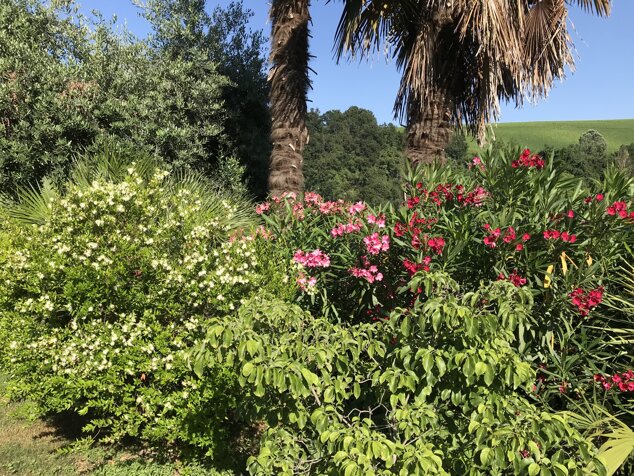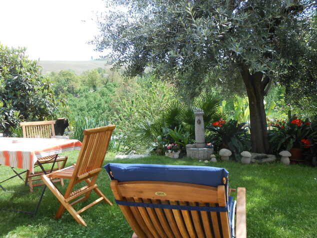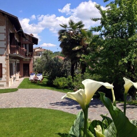 Pur essendo in centro paese, la casa è immersa nella natura, con piante che creano un ambiente riservato e rilassante.